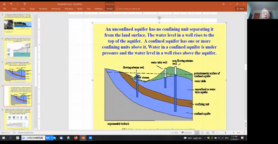 承办,毛德强教授和刘士亮副研究员联合开办的《地下水水文学》暑期课程正式开课。本次暑期课程面向全校本科生,于7月19日开始,至7月23日结束,历时五天;参与课程的学生分别来自土水海工程、环境工程、材料科学等多个专业,共33名。该课程邀请美国亚利桑那大学叶天齐教授通过网络教学平台直播授课,旨在让各专业本科生认识、了解地下水水文学基本理论知识及科学研究前沿,激发学生专业兴趣,培养学生多学科交叉融合的科研学习思维。