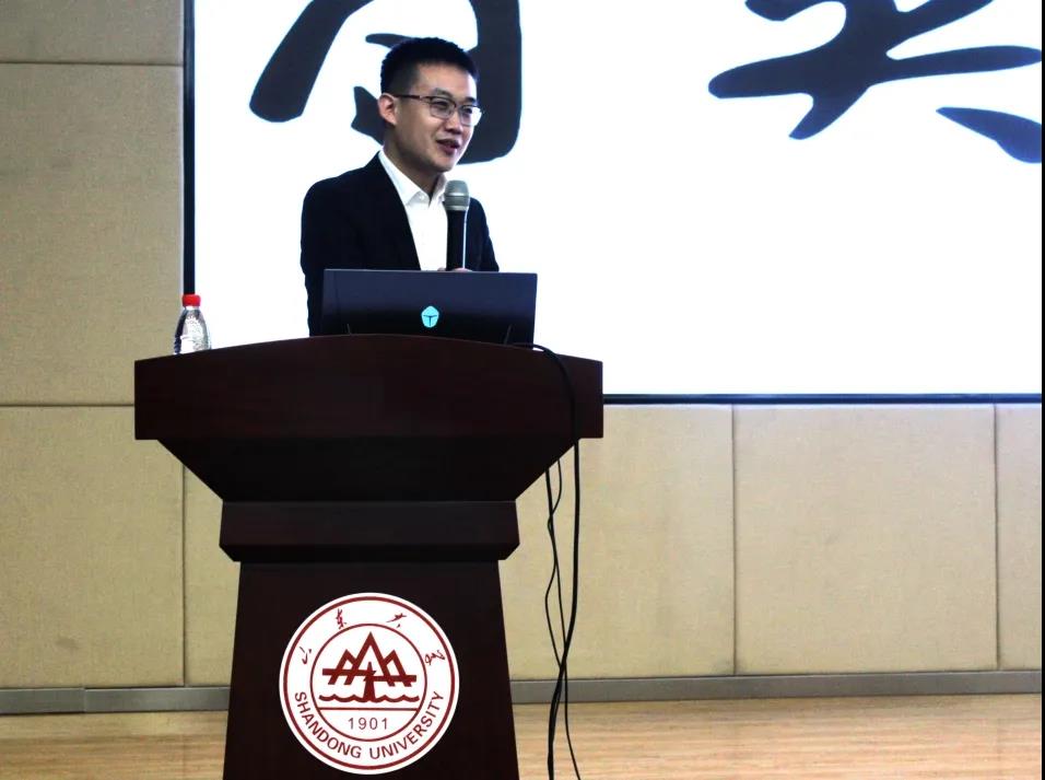 活动伊始,张强对邵飞翔、侯畅畅的到来表示欢迎和感谢。邵飞翔通过提问同学们是否了解土木工程未来的就业方向来引出话题,他以正在建设的“中央商务区360米超高层”项目为例,向大家介绍了施工方向的现状与发展。邵飞翔从项目简介、项目策划和项目管理特色和成果三个方面进行演讲。首先是项目简介,该项目的总建筑面积达22.63万平方米,塔楼总高度360米,致力于打造山东标杆示范项目,力争成为全国五星级的现场,做超高层建设的标杆。其次是项目策划,邵飞翔表示本次项目建设是在繁华地段进行,周围环境复杂,可供使用的场地狭小,为更快更好的完成项目,必须在前期进行详细的施工部署。最后是项目管理特色及成果,邵飞翔通过播放建设工地的施工现场视频,直观地向同学们展示了当前工地施工的智能与先进,整洁有序的施工现场打破了同学们对以往杂乱差施工现场的想象。“5G+智能建造”,大数据助力高效管理,通过大数据平台的智能控制、智能监控、能效管理、实时监测和4D进度等功能模块有力的支撑了项目施工阶段的智慧化监控。