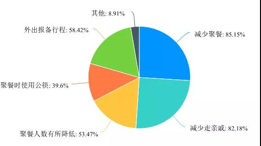 春节期间是人群聚集的高峰期,根据我们的初步调查显示80%左右的家庭选择今年减少聚餐以及走亲戚,50%左右的家庭会在外出时报备行程,减少聚餐人数。同时我们发现,有六成的家庭中有亲属因为防疫选择了就地过年。总总而言之,多数家庭因防疫需要选择了适宜的春节期间的行程或聚餐安排,做到了尽量在保证自身安全的情况下快乐过春节。