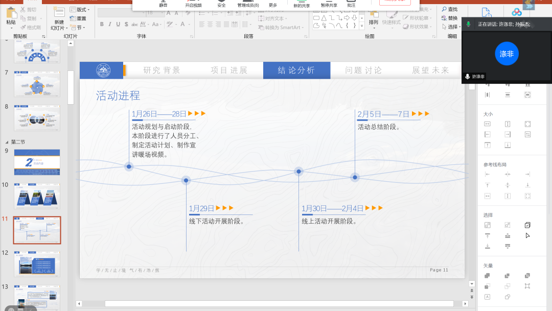 李骏程首先总结了本次活动,他表示,由于疫情防控的需要,我们没有开展大规模的回访活动,我代表大家进行了宣讲,我和孙振杰一起回校拜访了老师。好在活动的组织方为我们提供了线上感恩的平台,大家也都已完成线上贺卡的制作和发送,本次活动也已圆满收官。
