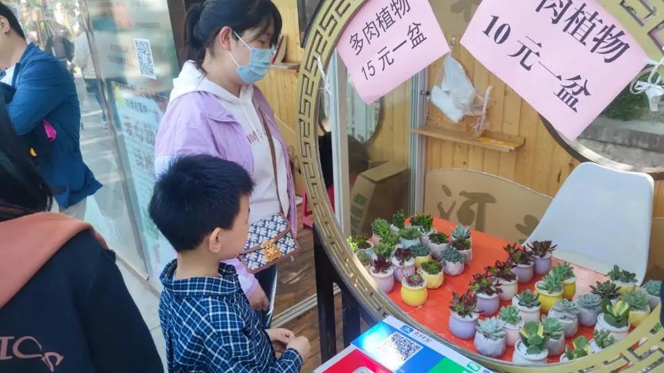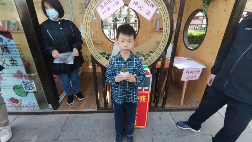志愿活动分为上午下午两个时间段,上午场8时至13时,下午场13时至17时。在三天时间内,志愿者两两结对,共同义卖。志愿者来到指定地点,将义卖商品多肉植物依次摆开,按照10元一盆进行义卖。曲水亭街假期游客量相对较大,人们对于义卖活动也颇多关注。在义卖过程中,多次有游客驻足询问植物的具体情况,志愿者们都进行耐心解答,并鼓励购买,为心智障碍人士献上爱心。