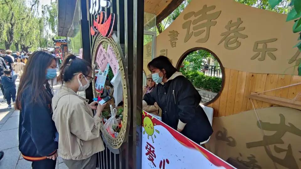 泉语水利志愿服务队协同济南市慧爱残疾人服务中心于曲水亭开展为期3天的助残义卖。售卖所得用于大龄心智障碍者就业技能培训。