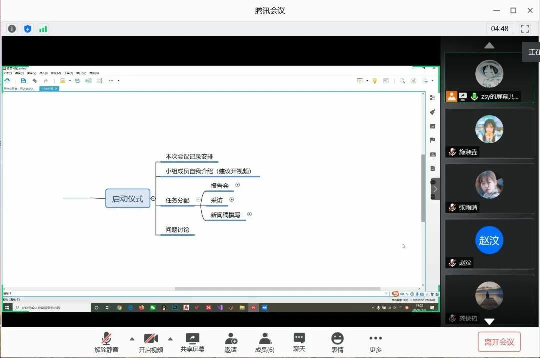 “再话芸窗”社会实践团队在线上举行启动仪式。此次会议由队长赵盛源主持,实践团队五名队员参加。