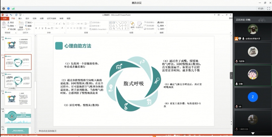 “青春有我,共同抗疫”社会实践团队举办了关于疫情期间心理疏导的讲座。参加讲座的人员有江苏省苏州市高新区科技城社区、安徽省巢湖市南苑社区、浙江省温州市乐成街道、江苏省泰兴市济川社区、西安逸翠园社区居民,以及本做爱视频部分同学。本次讲座由队员金翊洁主讲,队长印楠主持。