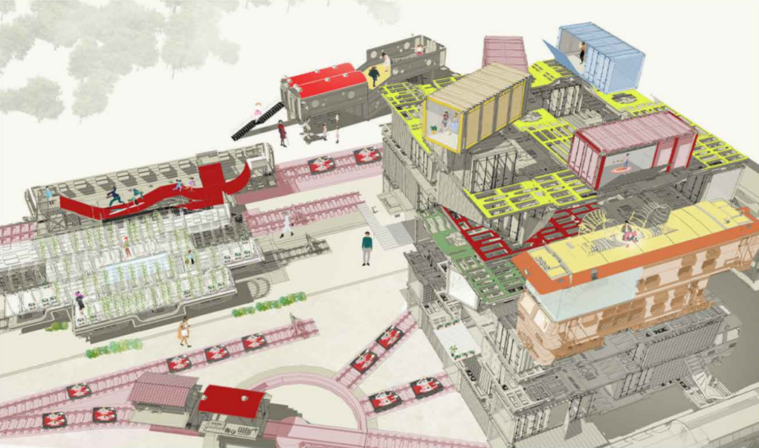 在生活空间设计方面,调研团基于未来生活方式,综合考虑道路、景观、日照、气候、地域文化等因素,因地制宜确定住宅朝向、建筑组合形态、沿街界面以及天际线设计方案。构建了从家到公共空间的多层次空间序列。